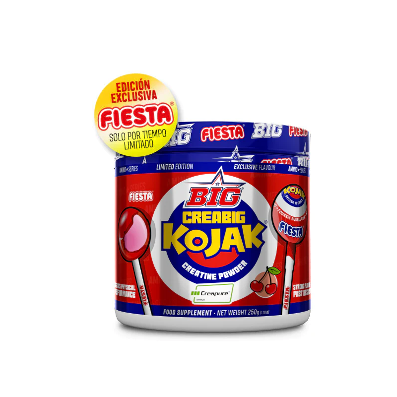 Presentamos en colaboración con Fiesta® la nueva creatina CREABIG FIESTA® sabor caramelo KOJAK®, una combinación de la mejor creatina monohidrato disponible en el mercado con la patente Creapure®, el sabor más genuíno de tu infancia con el caramelo Kojak® de Fiesta® y la experiencia de tu marca de suplementación deportiva de confianza Big®.