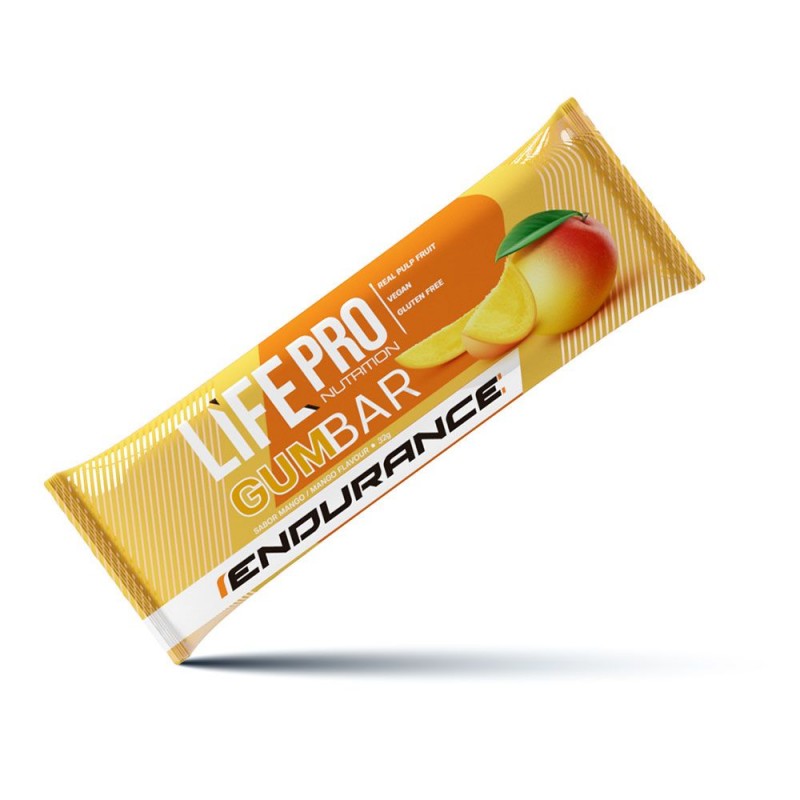 Life Pro Endurance Gumbar es una barrita con textura de gominola, que proporciona hidratos de carbono de rápida asimilación, de forma cómoda y sencilla. Life Pro Endurance Gumbar ha sido elaborada con pulpa de fruta. Es una barrita de gominola apta para veganos y sin gluten.